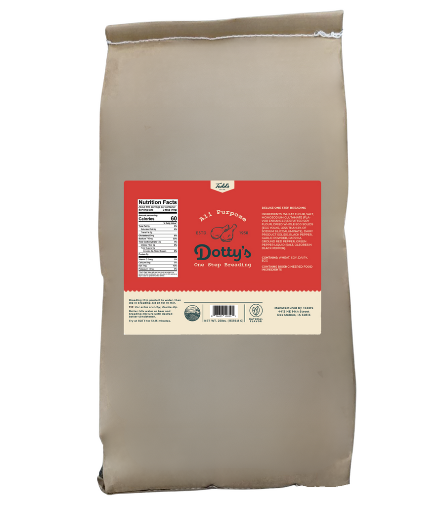 Dotty's One Step Breading Mix is your secret weapon for effortless crispy perfection. Skip the messy multi-step process and achieve restaurant-worthy results with just a single dip. This all-purpose, pre-seasoned mix transforms chicken, fish, or veggies into golden-fried delights in minutes. Simply dip your protein in water, coat it in the flavorful mix, and fry it up for a perfect crunch. Feeling adventurous? Create a light and airy batter using buttermilk or beer for a delicious twist. No matter your preference, Dotty's One Step Breading Mix guarantees hassle-free frying and finger-licking good results every time. So, ditch the stress and embrace the crispy goodness!
